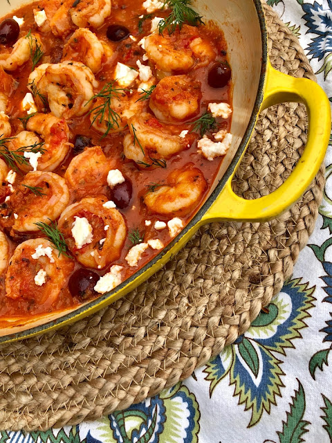 Mediterranean Shrimp with Feta and Kalamata Olives over Orzo